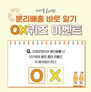 이베트 참여는 미에로화이바 SNS 페이지의 해당 게시글에서 분리배출에 관한 OX퀴즈를 풀고 댓글로 정답을 작성하면 된다. 추첨을 통해 10명에게 미에로화이바 350ml 제품 1박스를 증정한다. 당첨자는 28일 미에로화이바 SNS 채널을 통해 발표될 예정이다.