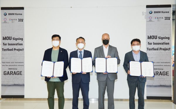 BMW 그룹 코리아(대표 한상윤)가 한국무역협회, 경기창조경제혁신센터, 퓨처플레이와 함께 국내 유망 스타트업 발굴을 위한 업무협약(MOU)을 체결하고 ‘BMW 테스트베드 프로젝트’를 공동 추진한다.