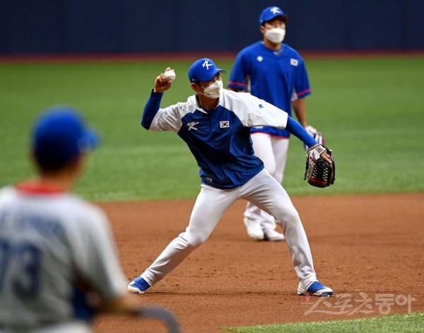 18일 서울 고척 스카이돔에서 ‘2020 도쿄올림픽’ 야구대표팀의 공식훈련이 진행됐다. 야구대표팀 오지환이 수비 훈련을 하고 있다.