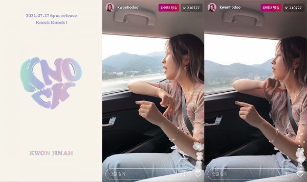 이번 영상은 앞서 공개된 스포일러 토크 영상에 이어지는 인스타그램 라이브 콘셉트의 영상으로, 드라이브를 즐기며 ‘KNOCK (With 박문치)’를 열창하고 있는 권진아의 모습이 담겼다.