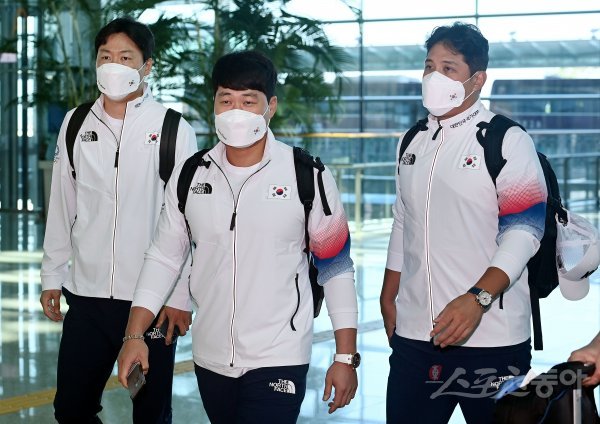 ‘2020 도쿄올림픽’ 야구국가대표팀이 26일 인천국제공항을 통해 일본으로 출국했다. 야구대표팀 차우찬, 오승환, 황재균이 출국장으로 향하고 있다.