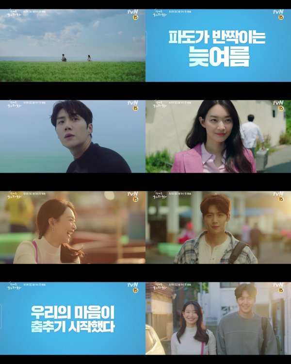 이번 1차 티저 영상은 도시여자 신민아와 바닷마을 남자 김선호의 만남을 예고한다는 점에서 흥미를 자극한다. 높은 빌딩 숲과 한강에서 조깅을 하고 있는 신민아, 그리고 바다 위를 가르는 배와 에메랄드빛 바다에서 여유롭게 서핑을 즐기는 김선호의 모습이 교차 편집되어 이들의 극과 극 라이프 스타일을 더욱 실감나게 보여주고 있기 때문. 여기에 ‘파도가 반짝이는 늦여름 우리의 마음이 춤추기 시작했다’라는 카피문구는 두 사람이 선보일 티키타카 힐링 로맨스를 향한 기대감을 높인다.