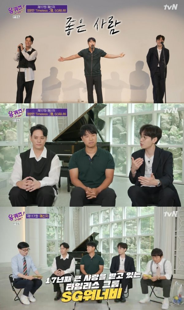 SG워너비(김용준, 김진호, 이석훈)는 지난 28일 오후 방송된 tvN 예능 프로그램 '유 퀴즈 온 더 블럭'의 메신저 특집에 출연해 유재석, 조세호와 만났다.