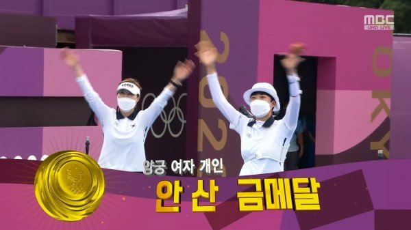 명승부를 연출하며 올림픽 양궁 사상 최초 3관왕을 차지한 안산 선수에게 김정근 캐스터는 “평생 한 번 겪기 어려운 중압감을 준결승에 이어 결승까지 겪어냈다.”며 안산 선수의 위업을 극찬했고, 장혜진 해설위원은 “금메달의 주인공이 될 자격이 충분하다. 막내로서 힘들었을텐데, 왕관의 무게를 굳건하게 이겨내 고맙다.”며 자랑스러운 후배를 향한 기쁨의 눈물을 보였다.
