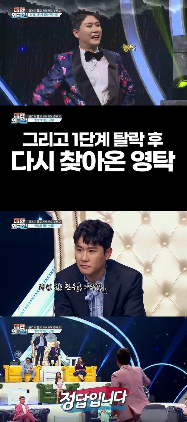 그중 가수 영탁은 1단계 탈락을 딛고 재도전해 우승을 거머쥔 첫 번째 도전자로, 자체 최고 시청률을 기록하며 뜨거운 반응을 모았다. 첫 출연 당시 ‘그땐 그랬지’ 퀴즈 1단계에서 영국 출신 다니엘에게 탈락하는 굴욕을 겪은 그는 탈락 후 한풀이 송으로 '니가 왜 거기서 나와'를 부르며 진한 아쉬움을 남겼다.