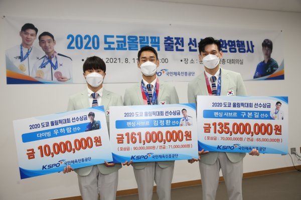 펜싱 김정환·구본길, 다이빙 우하람 선수에 격려포상금