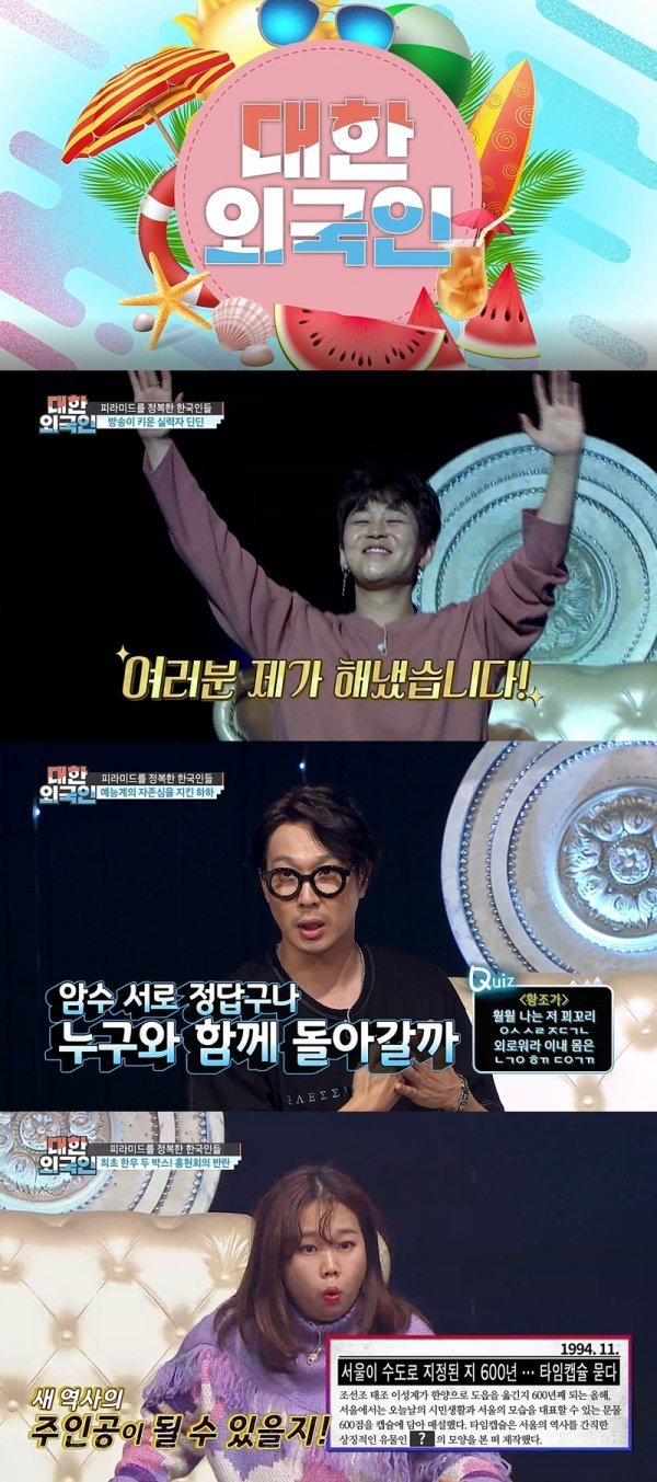 절대 지치지 않는 흥으로 무장하고 피라미드에 도전한 스타들을 모은 ‘저세상 텐션’, 모두의 기대를 무너뜨리며 ‘광탈’한 스타들의 흑역사를 모은 ‘1단계 탈락, 어이가 없네~?’, K-POP 아이돌의 개인기와 퀴즈 활약상을 모은 ‘아이돌 활약상’, 대한외국인 애청자 스타들의 남다른 퀴즈 도전기를 모은 ‘성공한 덕후가 된 스타’, 시청자와 출연자 모두를 깜짝 놀라게 하며 피라미드를 정복한 ‘피라미드를 정복한 한국인들’까지 모두 모았다.