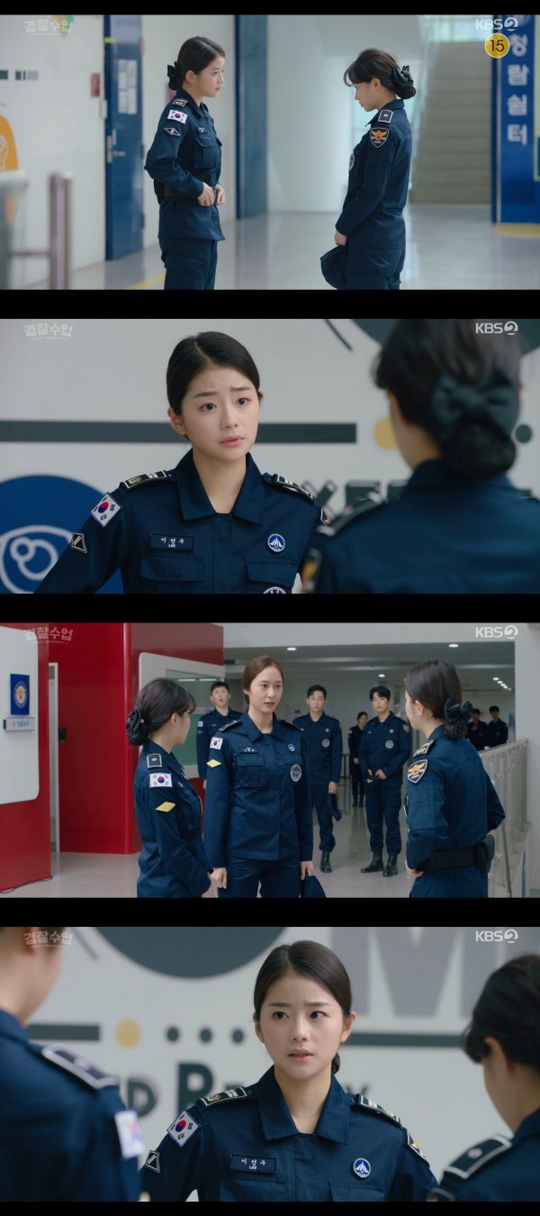 지난 10일 방송된 KBS2 새 월화드라마 ‘경찰수업’ 2부에서는 이언주가 후배들을 교육하는 장면이 그려져 눈길을 끌었다. 이언주는 청람교육에서 신입생들을 감독하던 중 복도에서 슬리퍼를 신은 복장 불량 후보생 민재경(박승연 분)을 발견, “거기! 복장불량!”이라며 날선 목소리로 그를 불러세웠다.