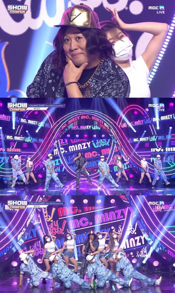 정준하(MC민지)는 11일 오후 방송된 MBC M ‘쇼! 챔피언’에서 데뷔 싱글 ‘I SAY WOO! (아새우!)’ 무대를 선보였다.