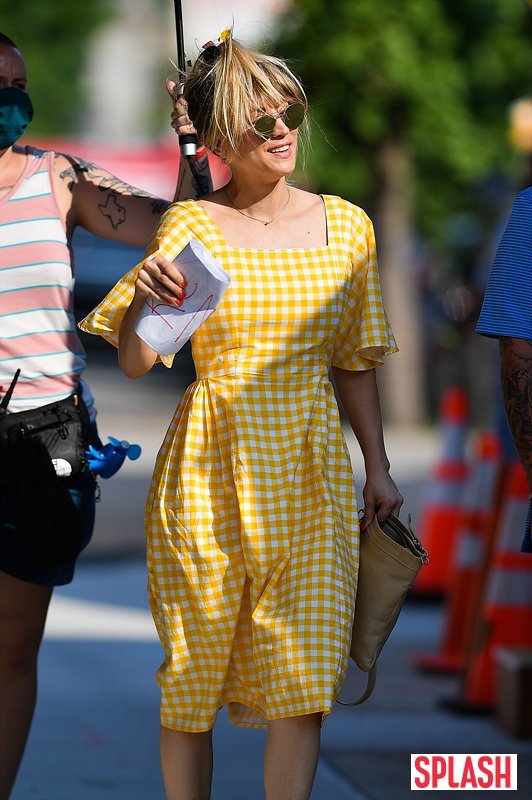 11일 (현지시간) 미국 뉴욕에 한 거리에서 포착된 케일리 쿼코는 넥라인이 시원하게 드러난 옐로우 원피스를 착용하여 산뜻한 여름을 연상케했다.