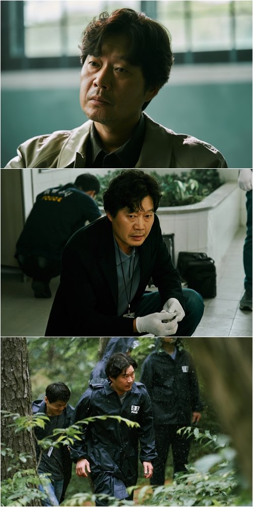 제작진이 공개한 스틸 컷에는 살인 사건을 쫓는 그의 묵직한 카리스마가 담긴다. 먼저 취조 중인 최형인은 매섭게 상대를 바라보고 있는데 흔들림 없는 그의 날 선 눈빛에서 진실을 파헤치겠다는 강렬한 의지가 드러난다. 또한 감식반과 함께 살인 사건 현장을 면밀히 둘러보는가 하면, 폭우가 쏟아지는 사건 현장을 거침없이 누비는 모습에서 베테랑 형사의 오랜 내공이 느껴진다.