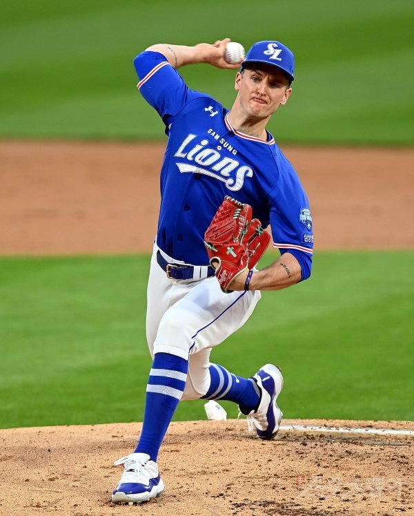 삼성 선발투수 뷰캐넌이 힘차게 볼을 던지고 있다.