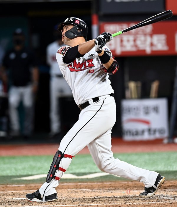 7회말 2사 1, 2루에서 kt 장성우가 역전 3점 홈런을 쏘아 올리고 있다.