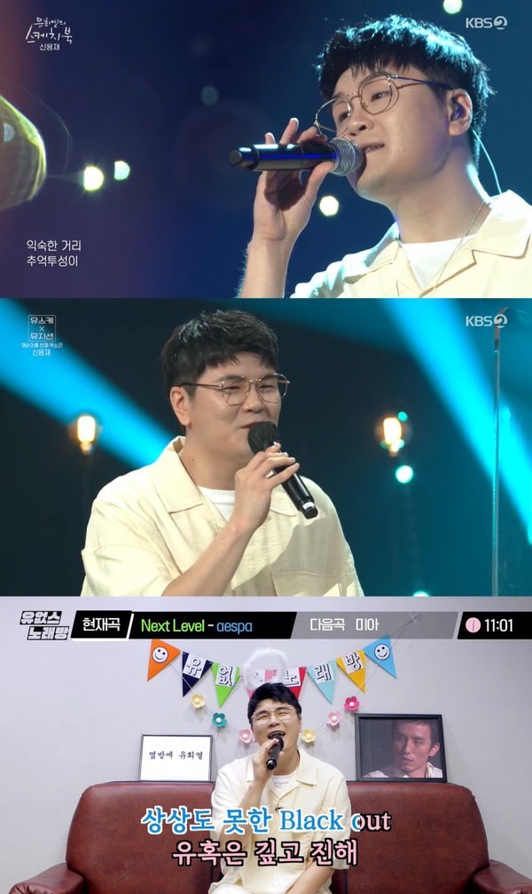 방송에 앞서 신용재는 KBS Kpop 유튜브 채널을 통해 공개된 '유없스 노래방'에 출연해 에스파의 'Next Level (넥스트 레벨)'을 원키로 가창했다. 걸그룹의 리듬감 있는 댄스 곡도 원키로 완벽 소화하는 신용재의 한계 없는 보컬이 빛을 발했다. 귀여운 안무를 더한 멋진 노래를 마친 뒤 신용재는 "다음에 기회가 되면 제대로 준비해서 보여드리겠다. 너무 즐겁고 재미 있었다"라고 소감을 전했다.