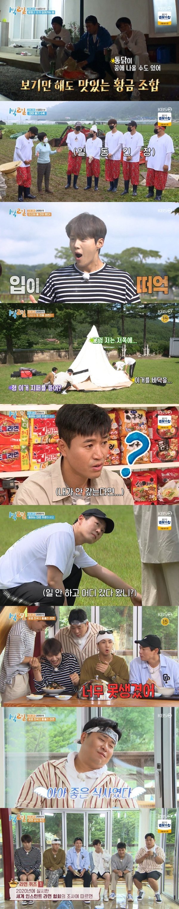 이렇듯 ‘1박 2일’은 국민 먹거리의 향연으로 입맛을 돋우는가 하면, 여섯 남자의 대결에 정점을 찍을 최강 라면의 등장을 예고하며 이어질 방송에 대한 시청자들의 궁금증을 더욱 고조시켰다.