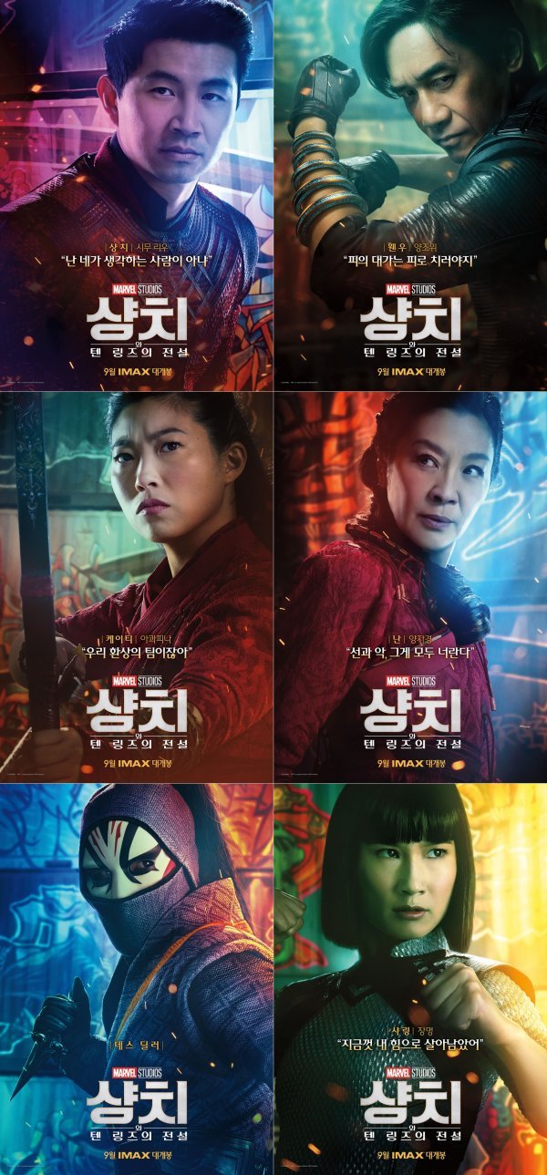 MCU의 세계관을 확장하며 마블 페이즈 4의 새로운 지평을 여는 강력한 NEW 슈퍼 히어로 ‘샹치’의 이야기를 그린 ‘샹치와 텐 링즈의 전설’이 9월 1일 전 세계 최초 개봉을 확정했다. 일명 ‘마블민국’으로 불리는 대한민국에서 가장 먼저 마블의 새로운 히어로의 탄생을 확인할 수 있는 바, 관객들의 마음을 사로잡을 6인 캐릭터의 모습이 담긴 캐릭터 포스터도 전격 공개됐다.