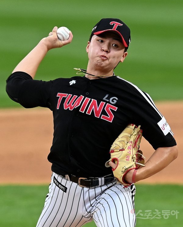 LG 선발투수 이민호가 힘차게 볼을 던지고 있다.