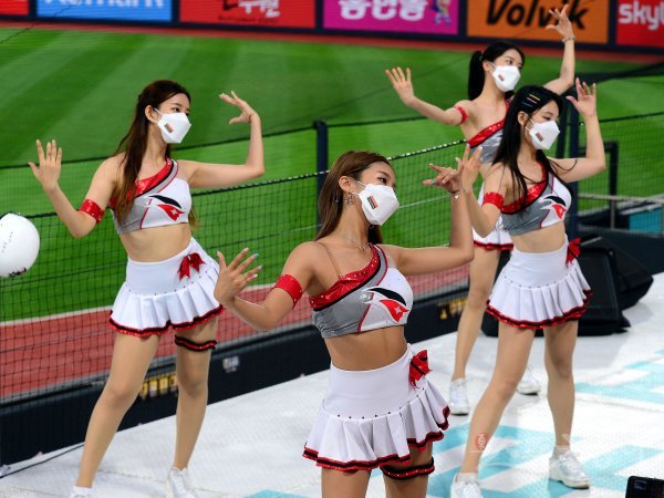 kt 치어리더가 화려한 공연을 선보이고 있다.