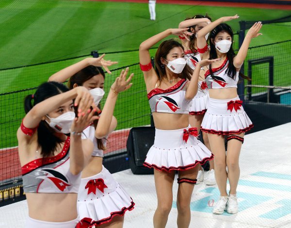 kt 치어리더가 화려한 공연을 선보이고 있다.