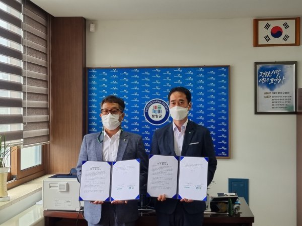 평창군관광펜션연합회 이천기 회장(왼쪽)과 모두투어 상품본부 조재광 본부장