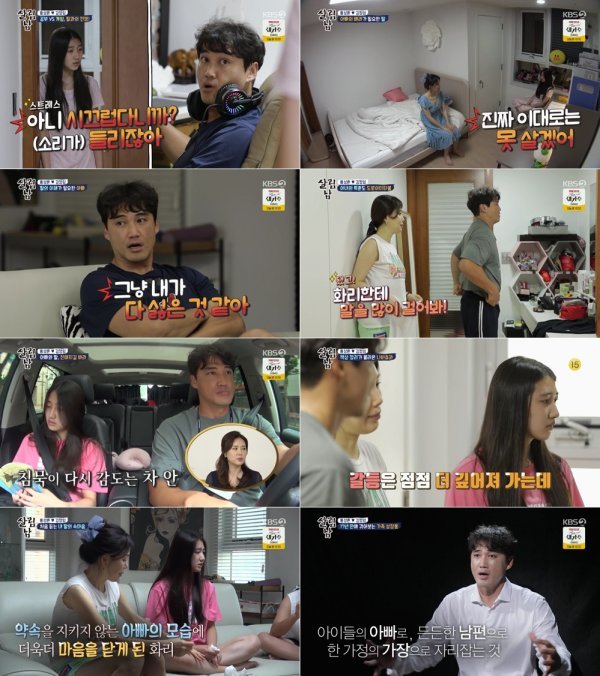늦은 밤 아이들 방 앞에 위치한 컴퓨터로 게임을 하던 홍성흔은 공부 중이던 딸 화리와 신경전을 벌였다. 두 사람을 중재하기 위해 홍성흔의 아내 김정임이 나섰고 화리는 “진짜 이대로는 못 살겠어”라며 불편을 호소했다. 홍성흔 또한 “쟤 일부러 그러는 것 같아”, “내가 다 싫은 것 같아”라며 불만을 토로했다.