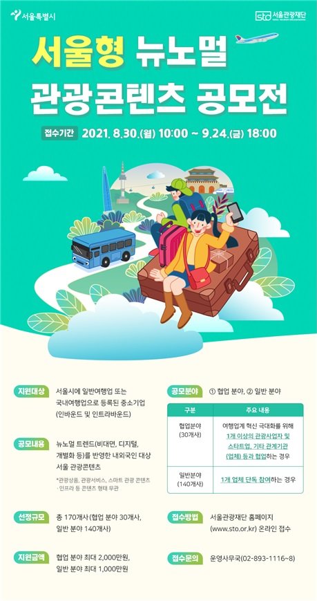 서울 관광의 위기를 극복하고 다가올 글로벌 관광 시장 재개를 대비하고자 170개사업체를 선정해 총 20억 원 규모의 사업비를 지원한다.