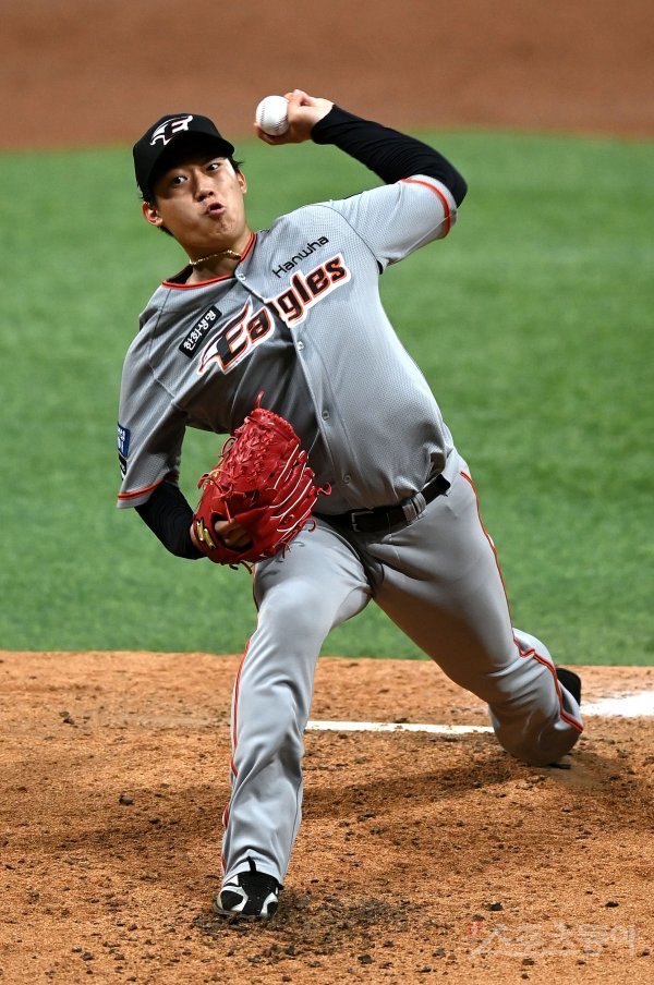 선발 투수로 등판한 한화 김기중이 역투하고 있다.