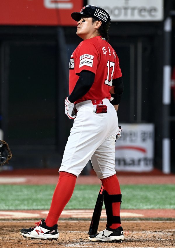 8회초 2사에서 SSG 추신수가 삼진 아웃으로 물러나고 있다.
