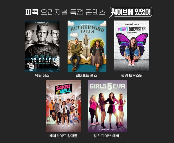 웨이브는 UCP와 텔레비전이 공동 제작한 ‘펑키 브루스터’(Punky Brewster)와 유니버설 텔레비전이 제작해 피콕 오리지널로 히트를 친 ‘베이사이드 얄개들’(Saved By The Bell), ‘걸스 파이브 에바’(Girls 5 eva)도 최초 공개한다.