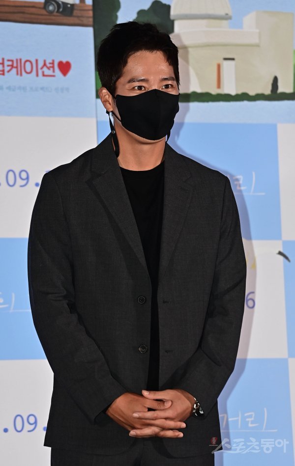 배우 이완이 31일 서울 광진구 자양동 롯데시네마 건대입구점에서 열린 영화 ‘영화의 거리’ 언론시사회 무대인사에서 포즈를 취하고 있다.
