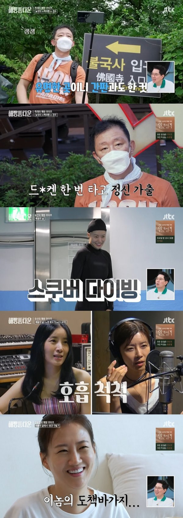 지난 달 31일 방송된 JTBC ‘내가 나로 돌아가는 곳-해방타운’(이하 ‘해방타운’)에서는 허재의 첫째 아들이자 농구선수인 허웅이 게스트로 출연한 가운데 입주자들의 보람찬 일상이 그려졌다. 허재는 지난주에 이어 경주에서 다양한 추억을 쌓으며 나 홀로 수학여행을 즐겼고, 유선은 스쿠버 다이빙부터 노래 레슨까지 배움을 통해 또 한 번 열정을 불태웠다. 장윤정은 여름맞이 소품부터 아이들을 위한 선물까지 직접 만들며 여유로운 일상을 보냈다.