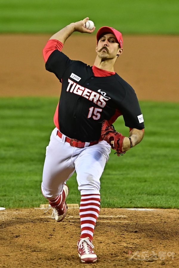 1일 서울 잠실야구장에서 열린 ‘2021 신한은행 SOL KBO리그’에서 두산 베어스와 KIA 타이거즈의 더블헤더 2차전 경기에서 선발 투수로 마운드에 오른 KIA 멩덴이 역투하고 있다.
