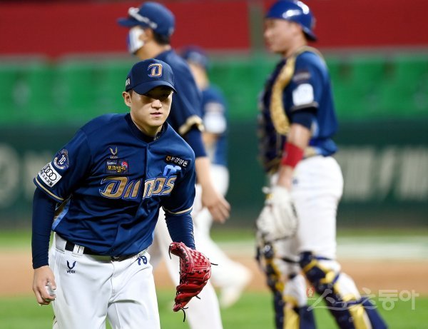 3회말 1사에서 NC 선발 강태경이 교체되고 있다.