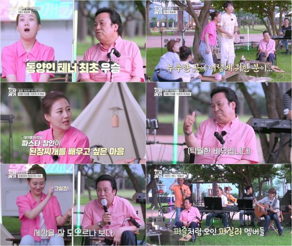 지난 2일 방송된 LG헬로비전 오리지널 新 예능 ‘장윤정의 도장깨기’(연출 류복열/제작 LG헬로비전, 이하 ‘도장깨기’) 6회에서는 강원도 철원에서의 두번째 캠핑 이야기가 그려졌다. 이날 방송에서는 ‘도장 패밀리’ 장윤정-도경완-곽지은-해수-장지원 밴드가 ‘월드클래스’ 테너 최승원과 ‘탈북 가수’ 노수현과 만나 그들의 노래와 인생이야기를 함께 나누며 훈훈한 웃음과 가슴 찡한 눈물을 함께했다.