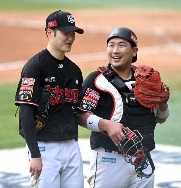 5일 서울 잠실야구장에서 ‘2021 신한은행 SOL KBO리그’ KT 위즈와 LG 트윈스 경기가 열렸다. 선발 투수로 등판한 KT 배제성이 4회말 투구를 마치고 포수 허도환과 이야기하고 있다. 잠실 | 김종원 기자 won@donga.com