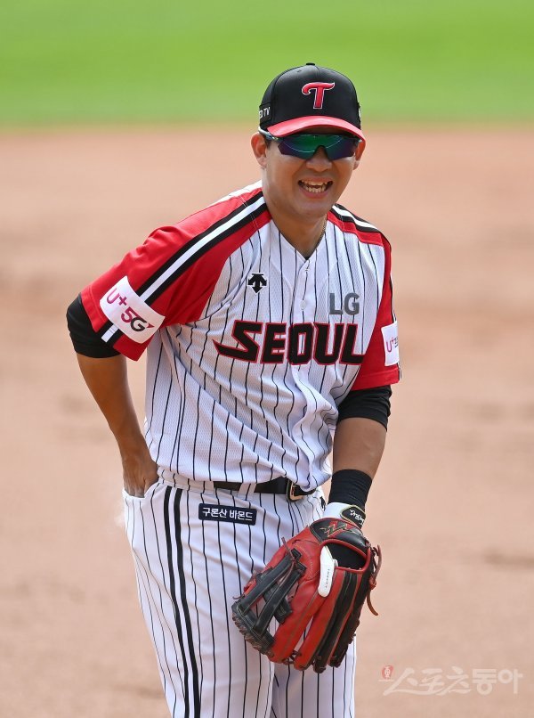 5일 서울 잠실야구장에서 ‘2021 신한은행 SOL KBO리그’ KT 위즈와 LG 트윈스 경기가 열렸다. 부상에서 복귀한 LG 김민성이 웃으며 수비를 준비하고 있다. 잠실 | 김종원 기자 won@donga.com