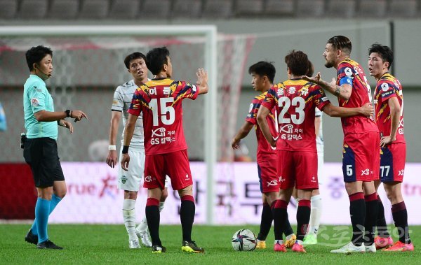 5일 서울월드컵경기장에서 열린 ‘하나원큐 K리그1 2021’ FC 서울과 전북 현대의 경기에서 서울 오스마르가 심판에게 페널티킥 상황을 어필하고 있다.