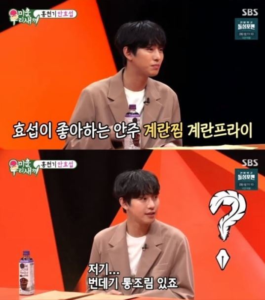 5일 오후 방송된 SBS TV 예능 프로그램 '미운 우리 새끼'에서는 배우 안효섭이 스페셜 MC로 출연해 술과 관련된 이야기를 했다.