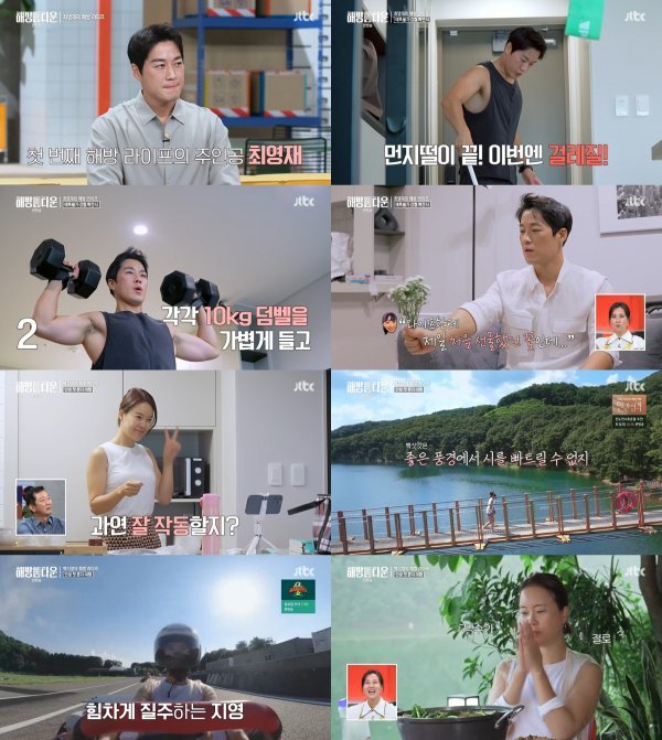 7일 방송된 ‘해방타운’에서는 입주자들의 열다섯 번째 해방 라이프가 그려졌다. 특전사 장교에서 VIP 경호원까지 독특한 이력으로 화제가 된 최영재가 새로운 8호 입주자로 등장해 해방 버킷리스트를 하나씩 지워나가며 높은 해방감을 만끽했고, 백지영은 한 번도 가보지 못한 혼자 여행 도전하며 자유를 누렸다.