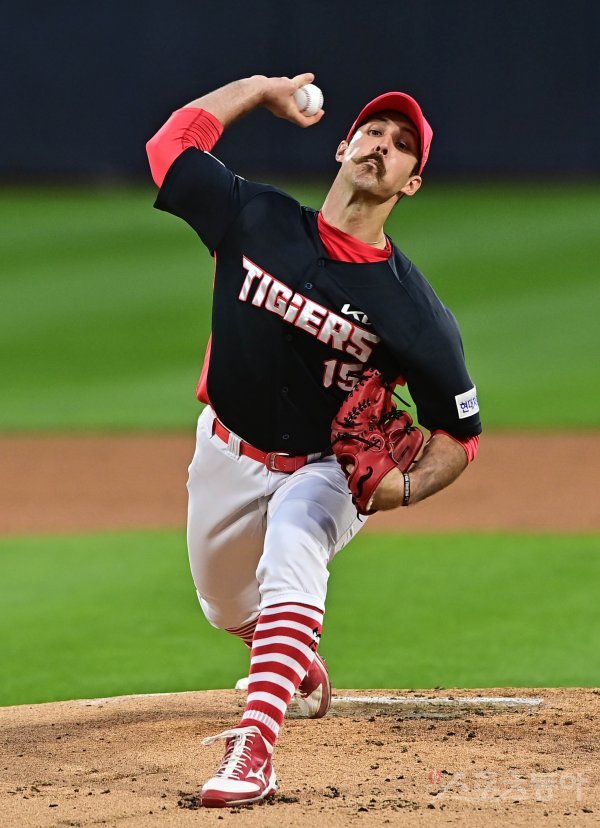 8일 경기도 수원KT위즈파크에서 ‘2021 신한은행 SOL KBO리그’ KT 위즈와 KIA 타이거즈의 경기에서 선발 투수로 마운드에 오른 KIA 멩덴이 역투하고 있다.