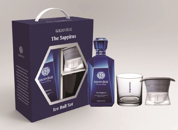 ‘더 사피루스 아이스볼 세트’(사진)와 ‘더 다이아몬드 스월링 글라스 세트’로 구성했다. ‘더 사피루스 아이스볼 세트’는 골든블루 사피루스 1병과 언더락잔 1개, 아이스볼 메이커 1개로 꾸렸다. 패키지 뒷면에는 아이스볼을 만드는 방법을 기재해 처음 접하는 소비자들도 어렵지 않게 메이커를 사용할 수 있도록 만들었다.