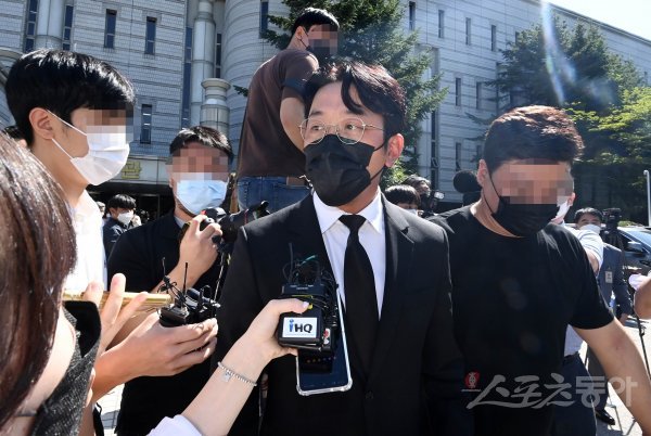 배우 하정우가 14일 서울중앙지방법원에서 마약류 관리에 관한 법률 위반 등 혐의로 기소돼 1심에서 벌금 3,000만원을 선고 받고 법원을 빠져나오고 있다. 주현희 기자 teth1147@donga.com