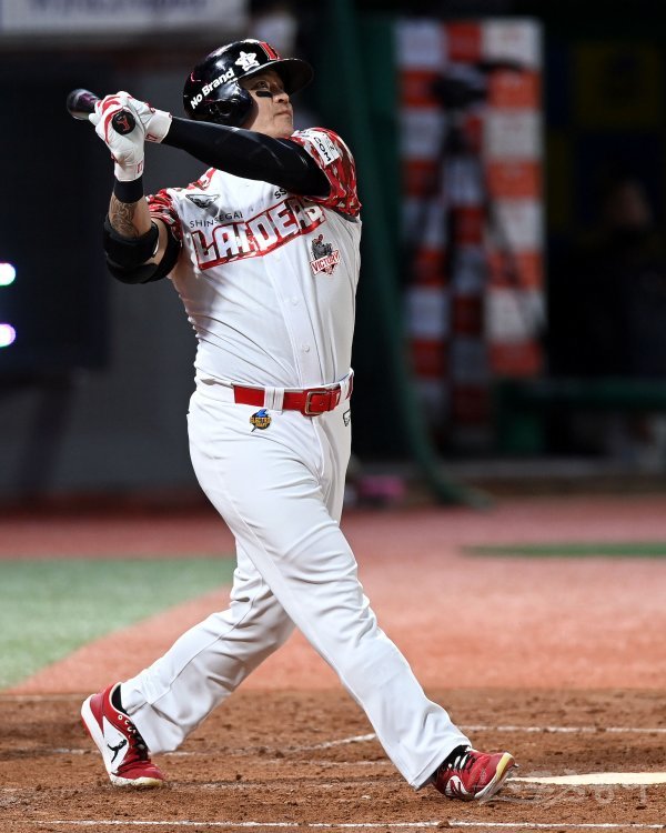 3회말 무사에서 SSG 추신수가 솔로 홈런을 쏘아 올리고 있다.