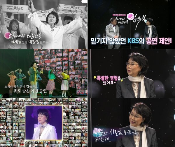 한편 KBS ‘2021 한가위 대기획 <피어나라 대한민국, 심수봉>’의 4개월간 대장정이 담긴 특별판 <피어나라 대한민국, 그리고 심수봉>은 오늘(21일) 밤 10시 10분에 방송한다.