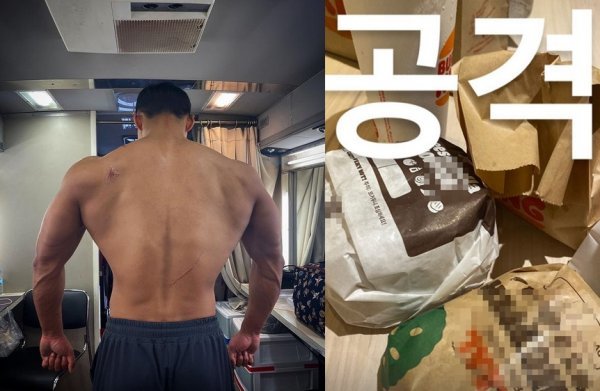 이어 "공격"이라는 단어와 함께 주문한 햄버거를 사진 찍어 올려 탈의 장면 촬영이 끝났음을 알렸다.