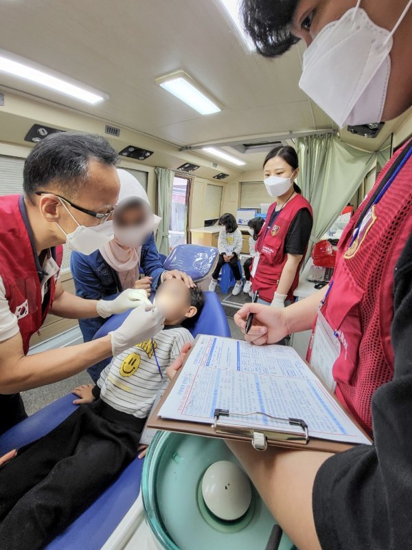 의료봉사단은 이기형 소아청소년과 교수를 단장으로 홍순철 산부인과 교수, 최연조 치과 교수 등 의료진과 간호사, 치위생사, 의료기사 등 10여 명으로 구성됐다. CT, X-레이, 초음파 검사시설을 갖춘 의료버스도 보내 현장검사를 진행하고 있다.