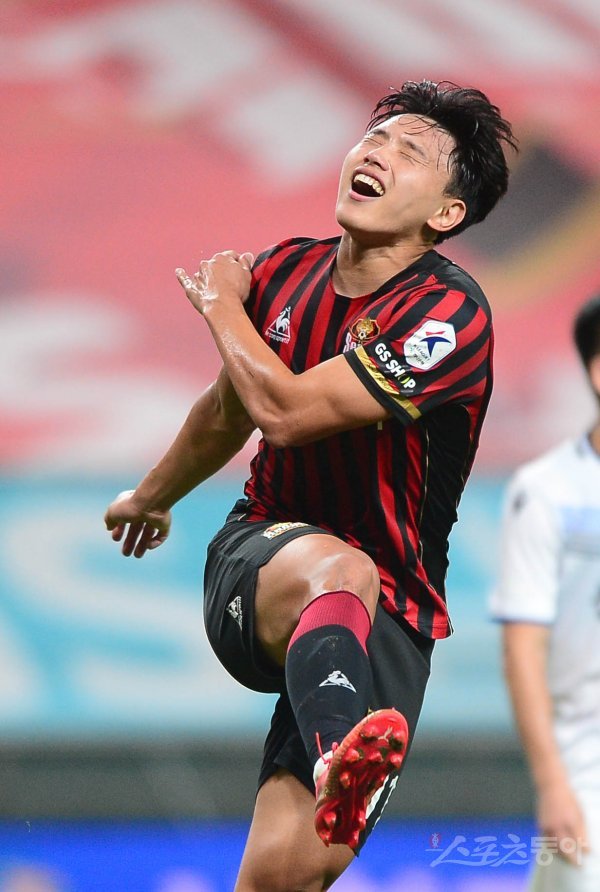 22일 서울월드컵경기장에서 열린 ‘하나원큐 K리그1 2021’ FC 서울과 인천 유나이티드의 경기에서 서울 조영욱이 골 찬스를 놓친 뒤 아쉬워하고 있다.