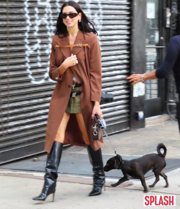 가수 두아 리파가 한 손으로 코트를 잡고 강아지를 산책시키는 모습이 포착됐다.