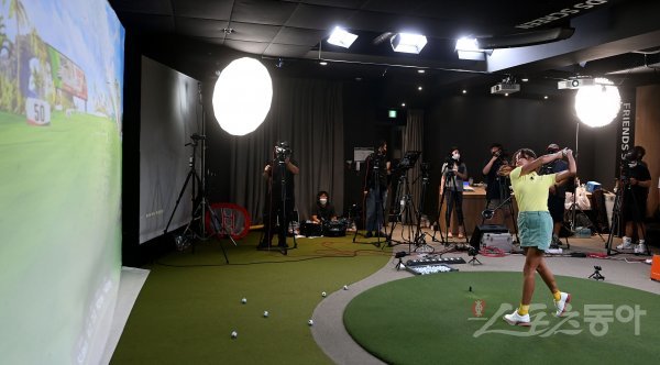 스포츠동아가 새롭게 론칭하는 유튜브 채널 ‘골프TV 일파만파’가 서울 용산구 프렌즈 아카데미 한남에서 첫 촬영을 가졌다. 공유진 골퍼가 촬영에 앞서 샷을 날리고 있다.‘일파만파’는 프로골퍼와 골프 인플루언서들이 골프에 관한 다채로운 이야기를 펼치는 무대로 골프와 예능을 접목해 흥미를 더한다. 출연자들이 입은 골프 의류는 ‘BOB골프’에서 제공했고, 골프 라운딩 등 필드패션 트렌드를 소개하는 채널인 ‘어반에이트’에서 제작 지원을 했다.