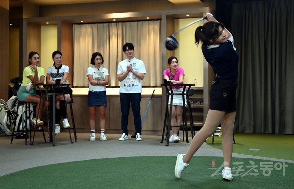 스포츠동아가 새롭게 론칭하는 유튜브 채널 ‘골프TV 일파만파’가 서울 용산구 프렌즈 아카데미 한남에서 첫 촬영을 가졌다. 윤민정 프로골퍼가 샷 대결을 펼치고 있다.‘일파만파’는 프로골퍼와 골프 인플루언서들이 골프에 관한 다채로운 이야기를 펼치는 무대로 골프와 예능을 접목해 흥미를 더한다. 출연자들이 입은 골프 의류는 ‘BOB골프’에서 제공했고, 골프 라운딩 등 필드패션 트렌드를 소개하는 채널인 ‘어반에이트’에서 제작 지원을 했다.
